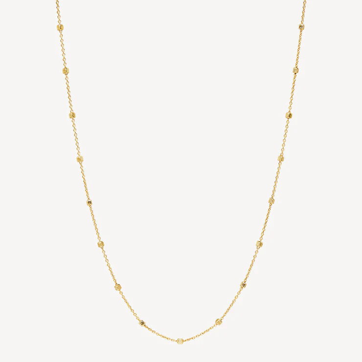 The Birdsong Necklace whispers a tale of the enchanting melodies that serenaded us along Capri’s idyllic paths. Crafted by our Italian artisans, she features a trail of textured square beads along an elegant belcher chain, reminiscent of musical notes. Whether flying her solo or layered, she is – like birdsong – a beautiful symbol of optimism and joy.