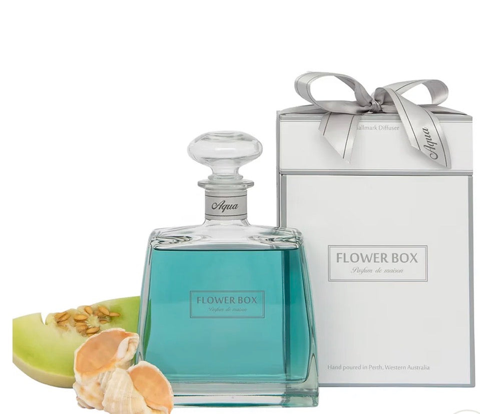 Flower Box 700 ml Hallmark reed diffusers are the finest quality in exquisite and elegant bottles beautifully gift wrapped in quality hard boxes with ribbons. Designed to be proudly displayed in any office or home to remind the recipient by the beautiful scent and visual appear of the bottle of where the gift came from. The scent lasts about 12 months and lower cost refills are available.