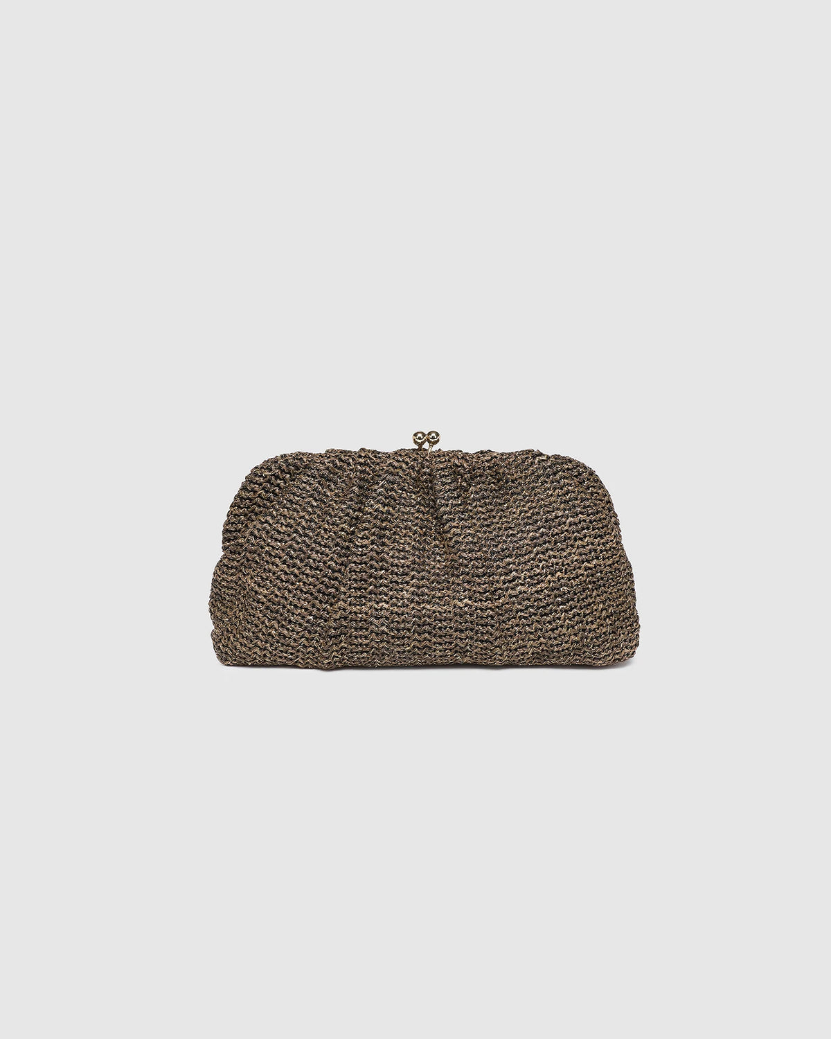 The Goldie Raffia Chocolate Clutch is your statement plus-one for any occasion, designed to elevate your look from daytime celebrations to evening soirées. This evening clutch features a slouchy yet structured silhouette, crafted in a raffia-like texture for a modern take on timeless texture. As a true gold chain clutch, Goldie is finished with both a short and long gold chain strap, giving you the freedom to wear her in hand, over the shoulder, or crossbody. A polished kiss clip closure keeps your essentials secure, while her lightweight design ensures effortless wear. Striking the perfect balance between relaxed charm and refined design, Goldie is the accessory that brings a touch of shine to every moment - from long lunches to late nights.