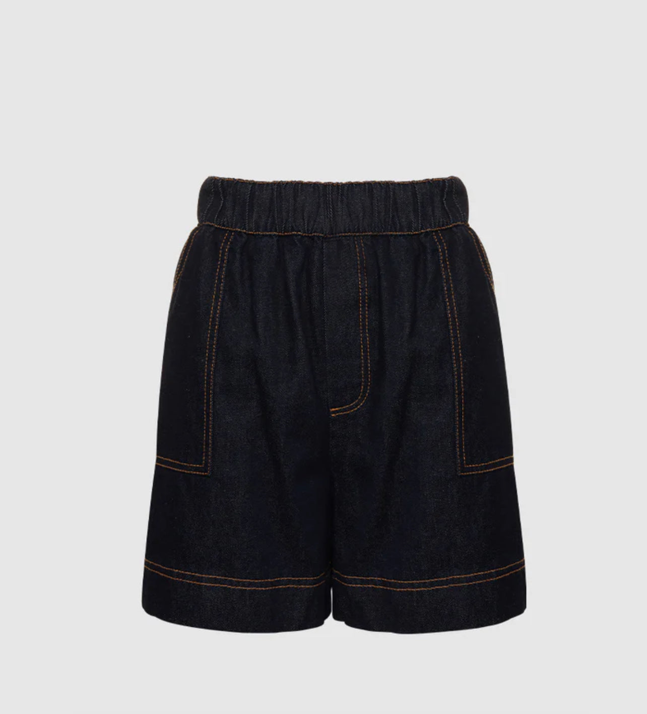 - Dark indigo blue denim relaxed fit shorts