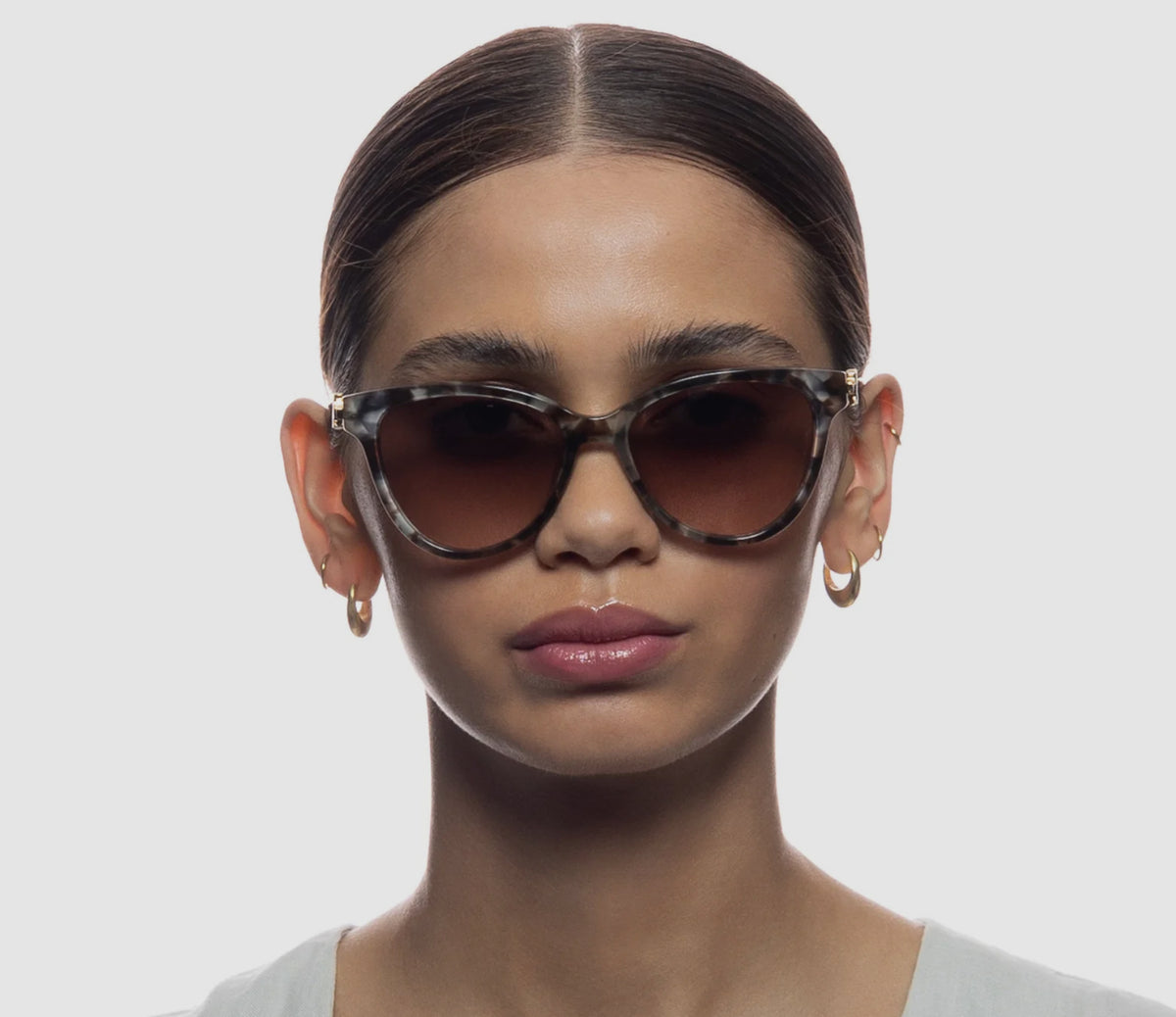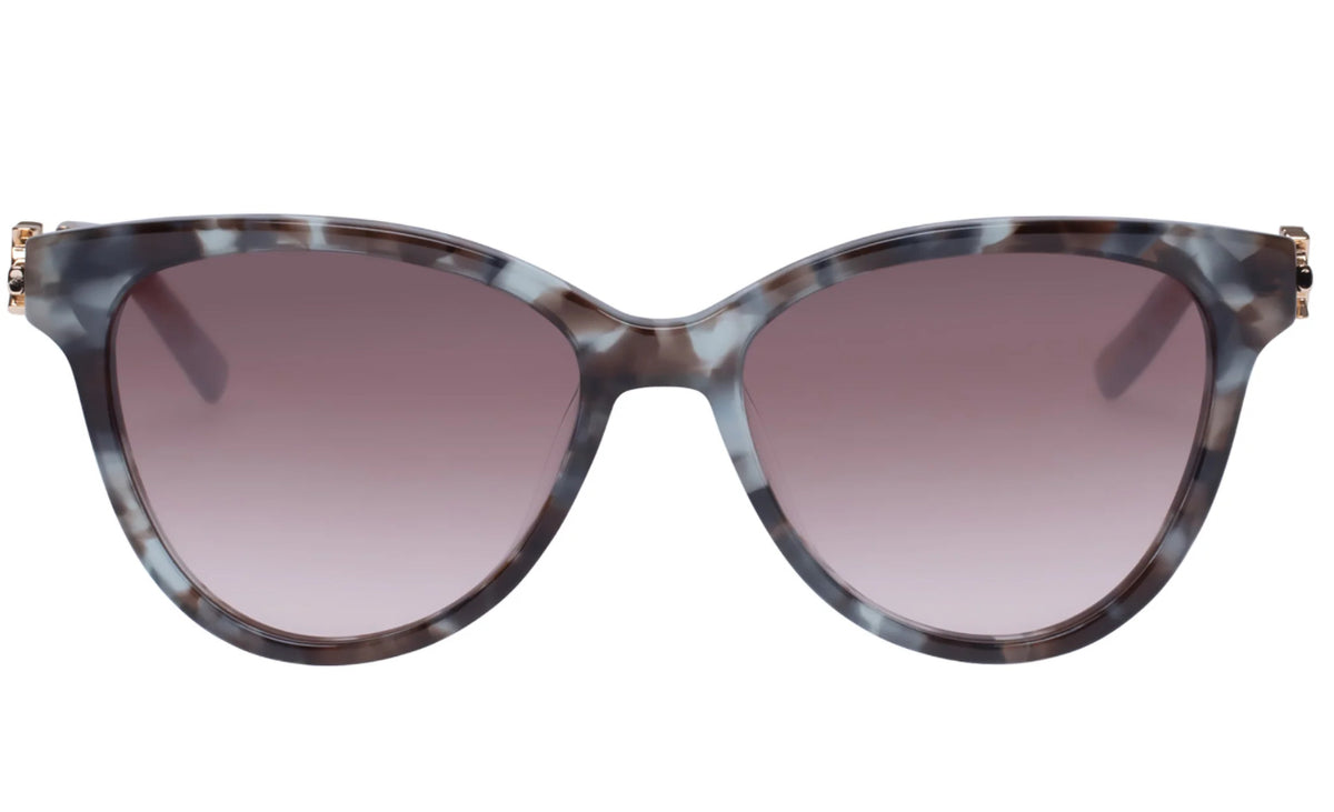 Asher is a beautifully crafted cat-eye, in medium size. Constructed to perfection, Asher is handcrafted using grey blue tortioseshell acetate with gold metal temples. Complimented with a brown grad lenses. The Oroton logo brandmark features on both temples.