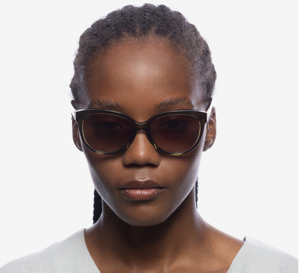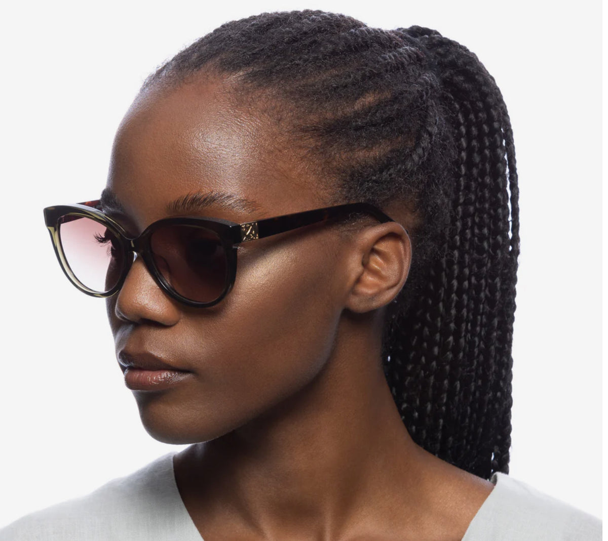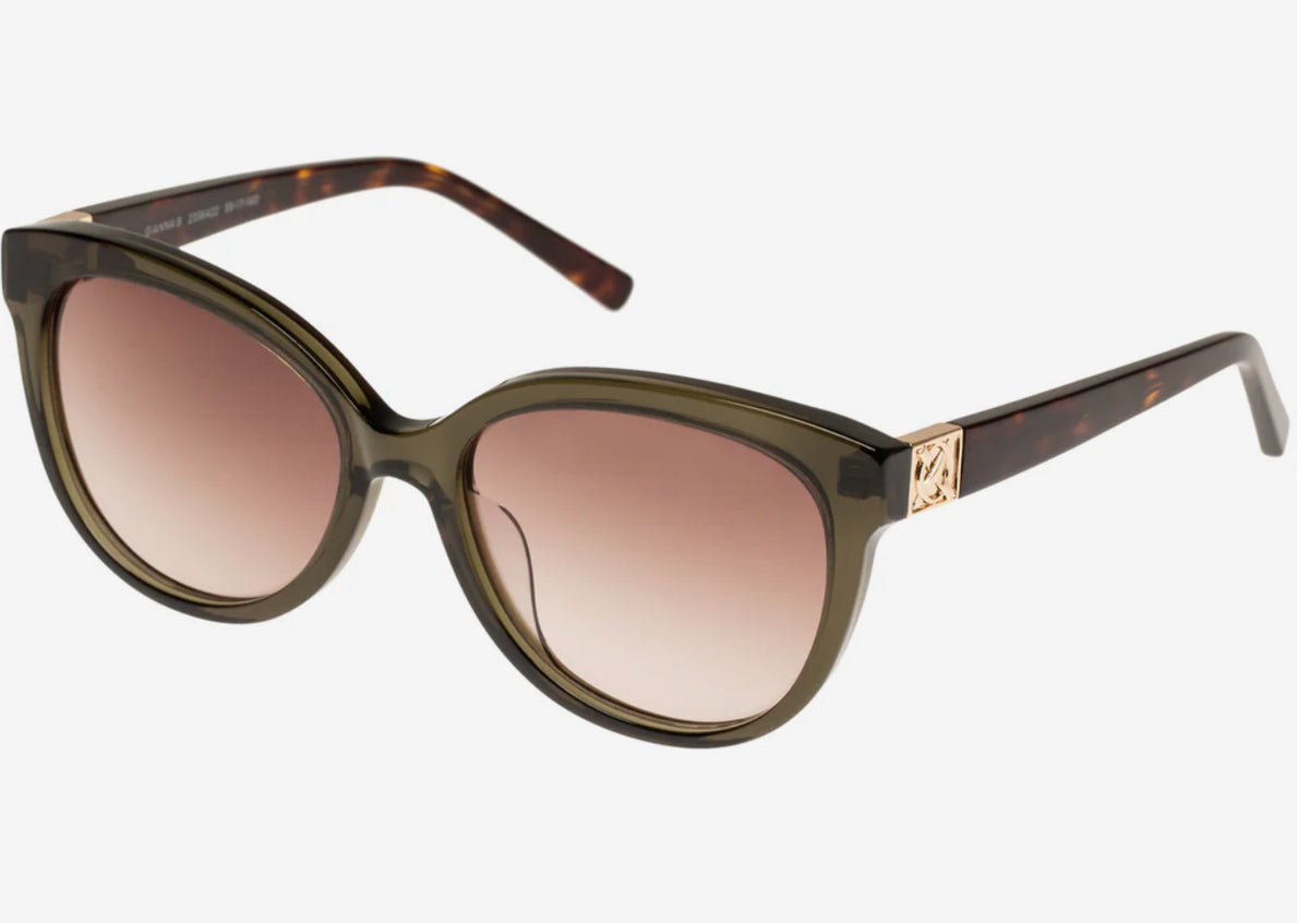 • Finished in a premium khaki and signature tort frame with brown gradient lenses.