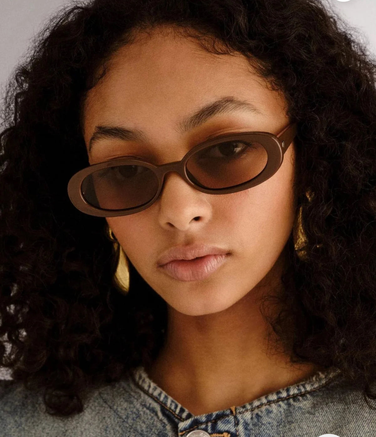 Exuding '90s confidence, our iconic OUTTA LOVE silhouette offers a minimal nineties look. This petite, slimline oval silhouette features a modern flat profile and signature Le Specs gold metal hardware, and is just the right size to complement your face without hiding your best features.